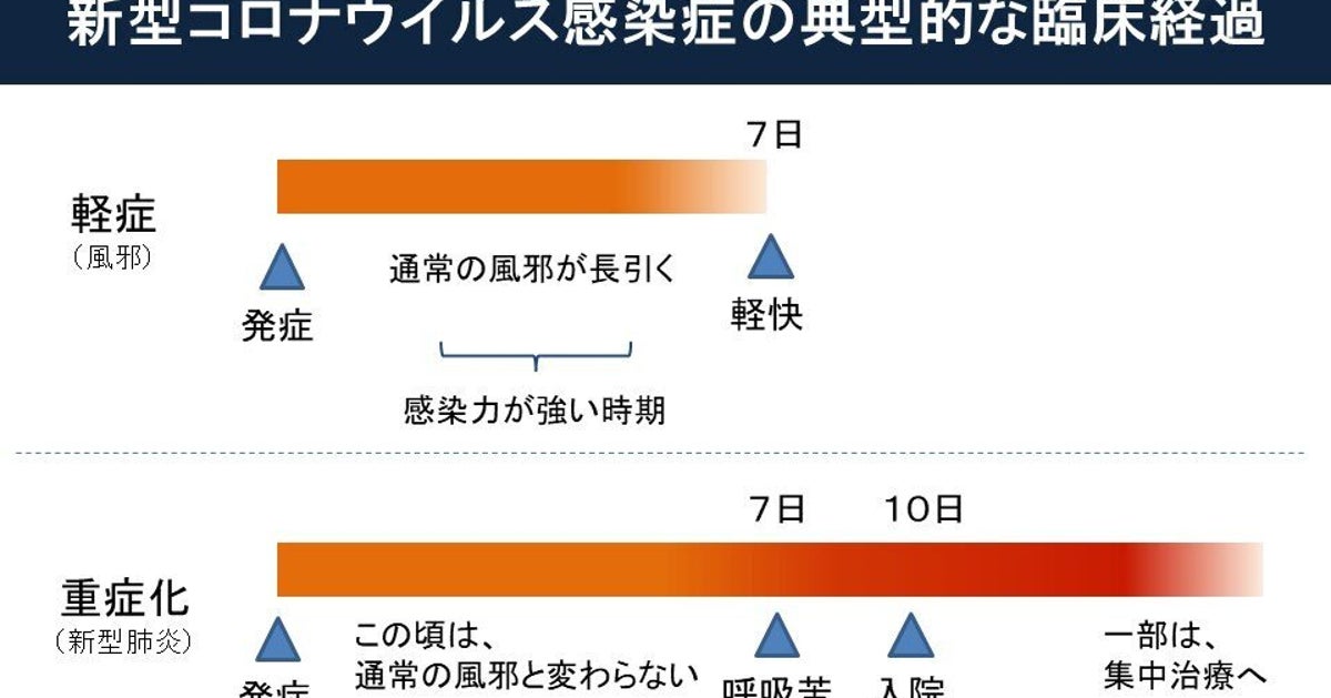 感染してから発症するまでの潜伏期間は5日(1-11日)ぐらいで、入院を要するほどに重症化するのは、さらに10日(9.1-12.5日)経ったころだと見積もられています。