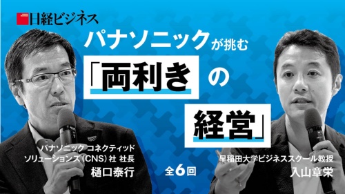 パナソニックは、どのようにイノベーションを生み出せる組織へと変わろうとしているのか。パナソニック コネクティッドソリューションズ(CNS)社の樋口泰行社長と、早稲田大学ビジネススクールの入山章栄教授の対談を通じて、「大企業病」を打破するためのヒントを探る。(写真:北山宏一)