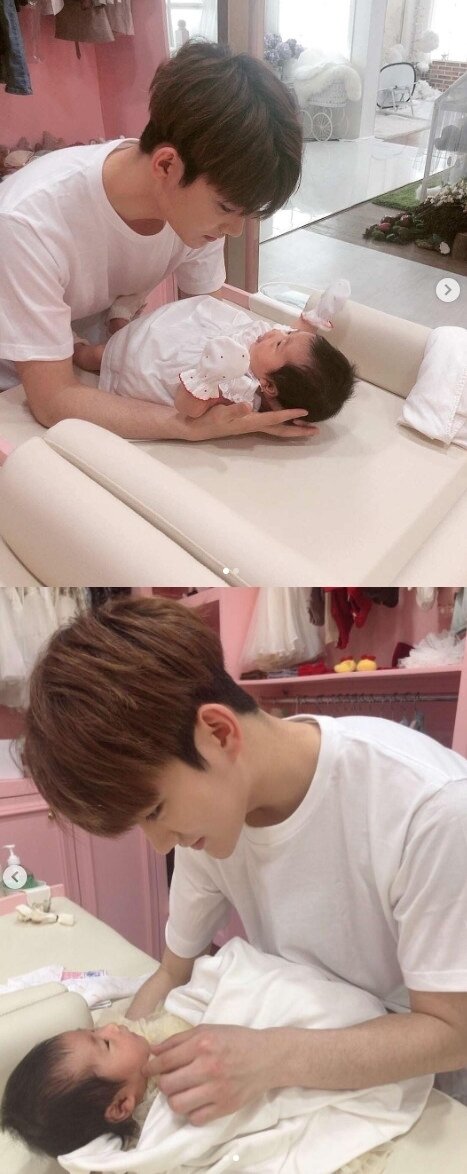 공개된 사진에서 진화는 딸 혜정이의 갓난 아기 시절 그를 사랑스럽게 바라보고 있는 모습이다. 이들 부녀의 다정한 눈맞춤이 시선을 모으고 있다.