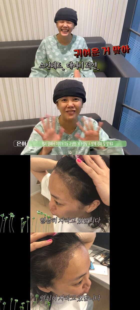 그러면서 "7시간을 기다려준 방 대표도 고마운데, 원장님, 간호사 분이 6~7명이 되시나 너무 고생 많으셨다, 관리 잘해서 저희가 오늘 고생한 거 보람되게 관리 잘 하겠다"고 덧붙였다. 이어진 영상에서 고은아는 며칠 후 자연스러워진 헤어라인을 드러냈다. 더욱 빽빽해진 헤어라인이 눈길을 끌었다.