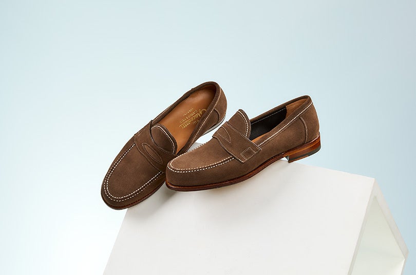 年々人気が高まる定番デザインで、際を走るモカステッチ、オーバル型のトゥはイタリア靴ながら柔らかい雰囲気を演出。カジュアルユースにもぴったりな一足だ。今季はグレージュカラーのスエードのアンライニング仕立てに別注。