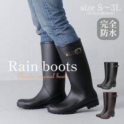 すっきりとしたシルエットで、パンツスタイルからスカートスタイルまで幅広いコーディネートに合わせやすく、上品に着こなせるレインブーツ。完全防水でこれからの梅雨時期に活躍すること間違いなし!